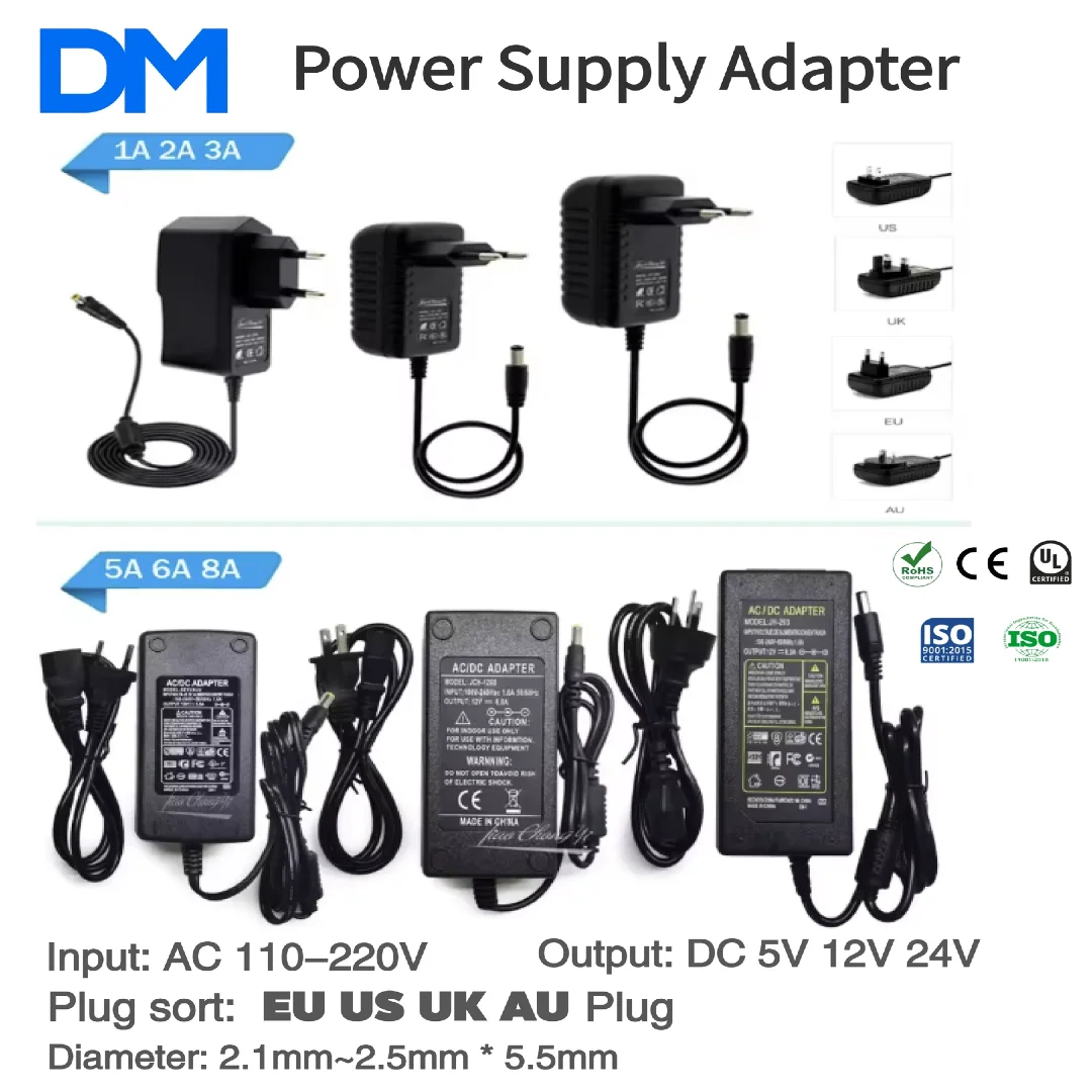 Alimentatore AC 220V 110V A DC 12V 24V 5V Adattatore di alimentazione 1A 2A 3A Trasformatore AC 220 110 V A DC 5 12 24 V Per Luce LED