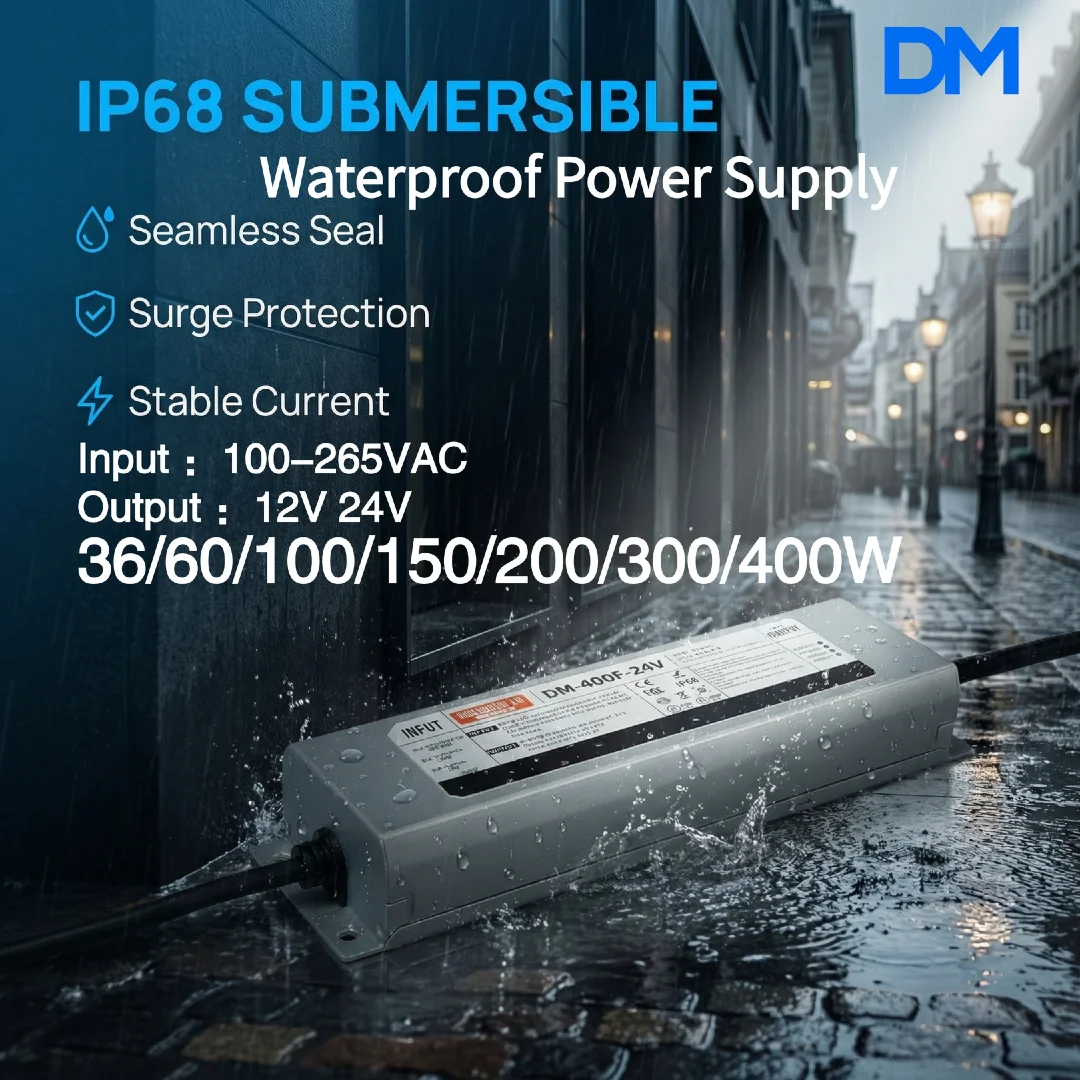 Driver LED Impermeabile IP68 per Carichi di Potenza 36W-400W, Alimentatore Switching AC 100-265V a DC 12V/24V