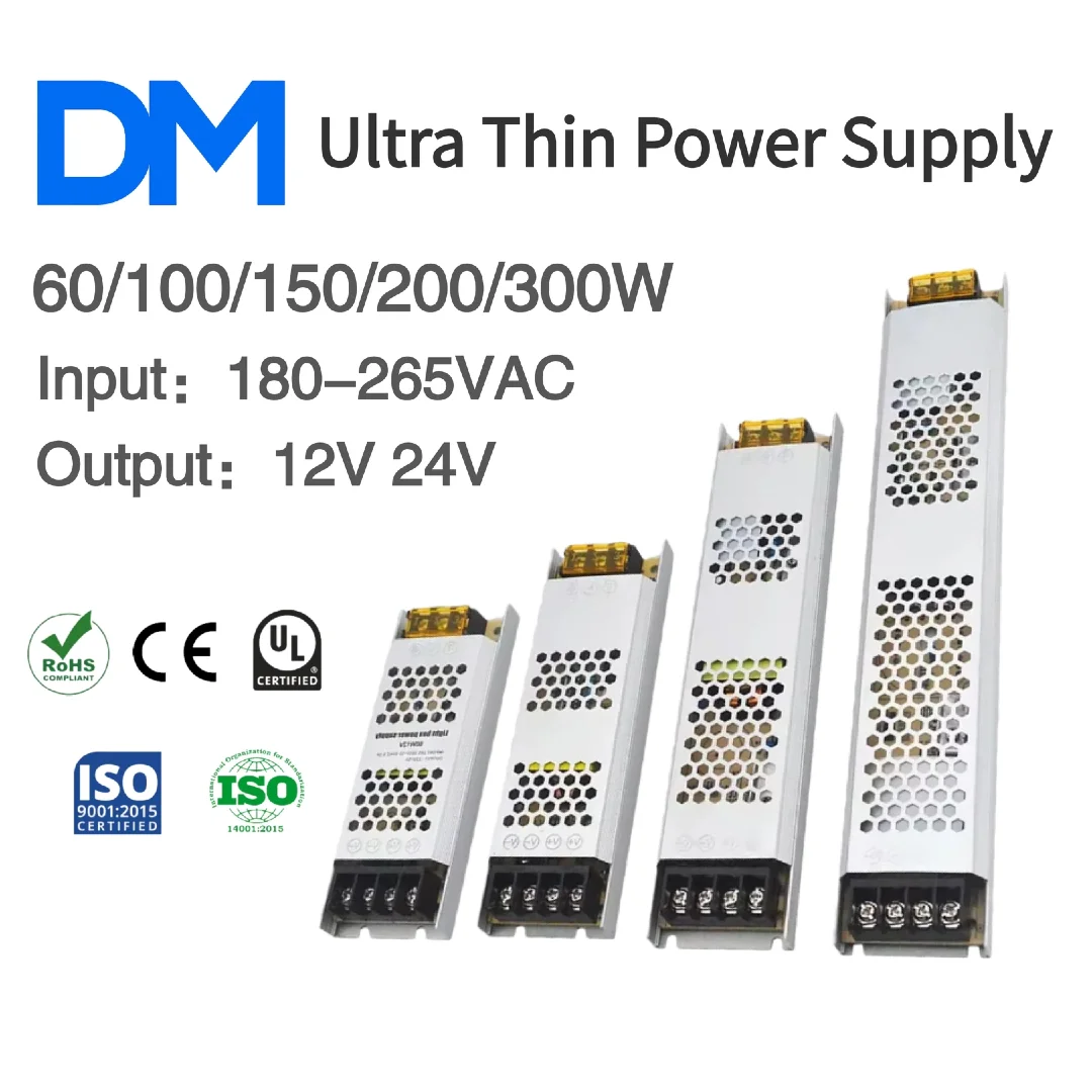 Alimentazione LED ultra sottile CA 180-265 V a CC 12 V/24 V 60 W 100 W 200 W 300 W Alimentazione per driver luce LED per strisce LED