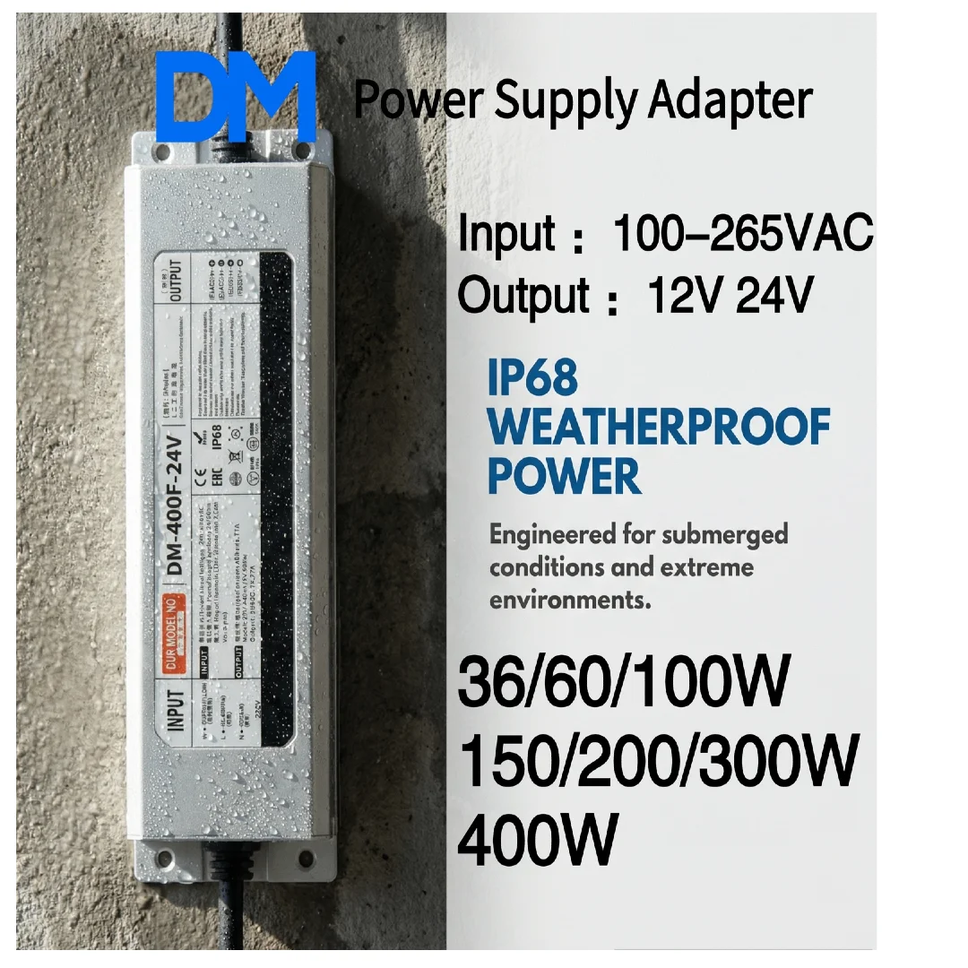 Alimentatore switching impermeabile AC 100-265V a DC 12V/24V per LED, 100% potenza, IP68, 36W/60W/100W/150W/200W/300W/400W