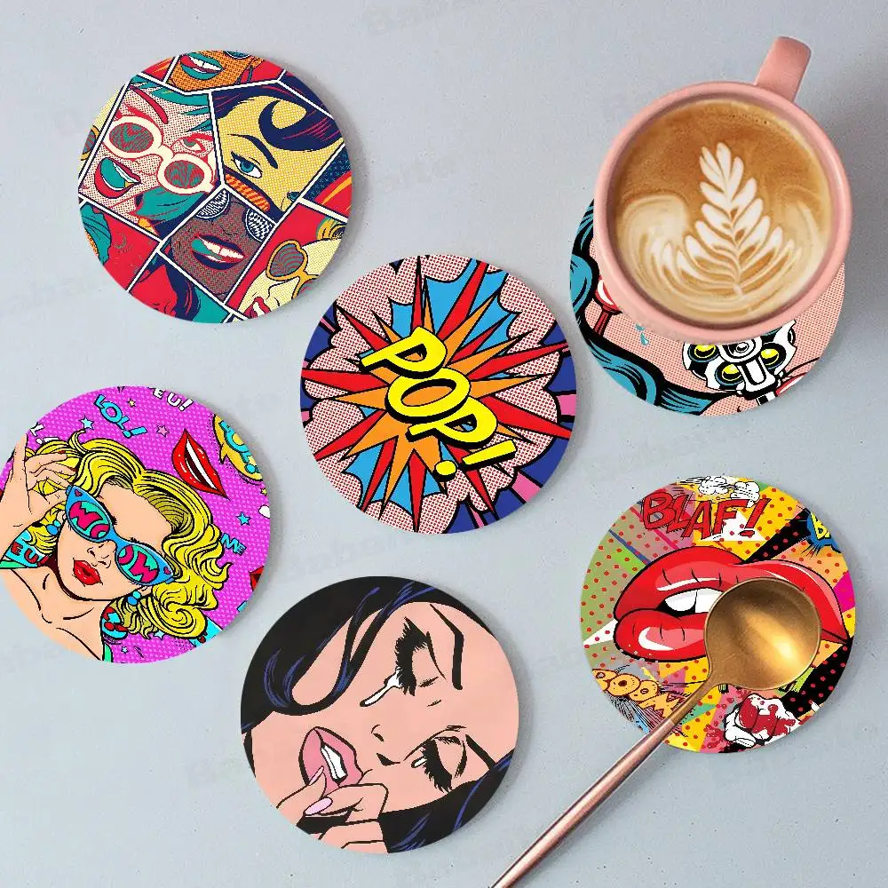 Sottobicchieri con Stampa Artistica di Roy L-Lichtenstein, Adatti per Decorazione Quotidiana, Feste Familiari, Ufficio, Sottobicchieri in Legno Antiscivolo