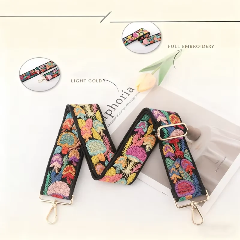 Tracolla per borsa retrò floreale, tracolla ricamata all'uncinetto con fiori, tracolla per borsa fai da te, accessorio decorativo per borsa