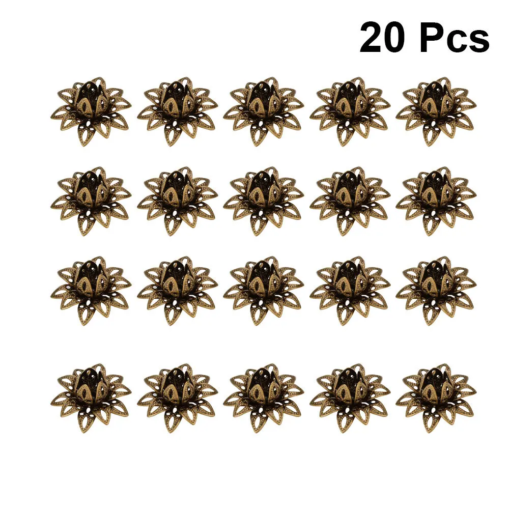 20 Pezzi di Copriperle a Forma di Loto Cavo, Distanziatori Metallici per Componenti di Gioielli Fai-da-Te, per Collane e Bracciali, Progetti Artigianali, Verde Antico