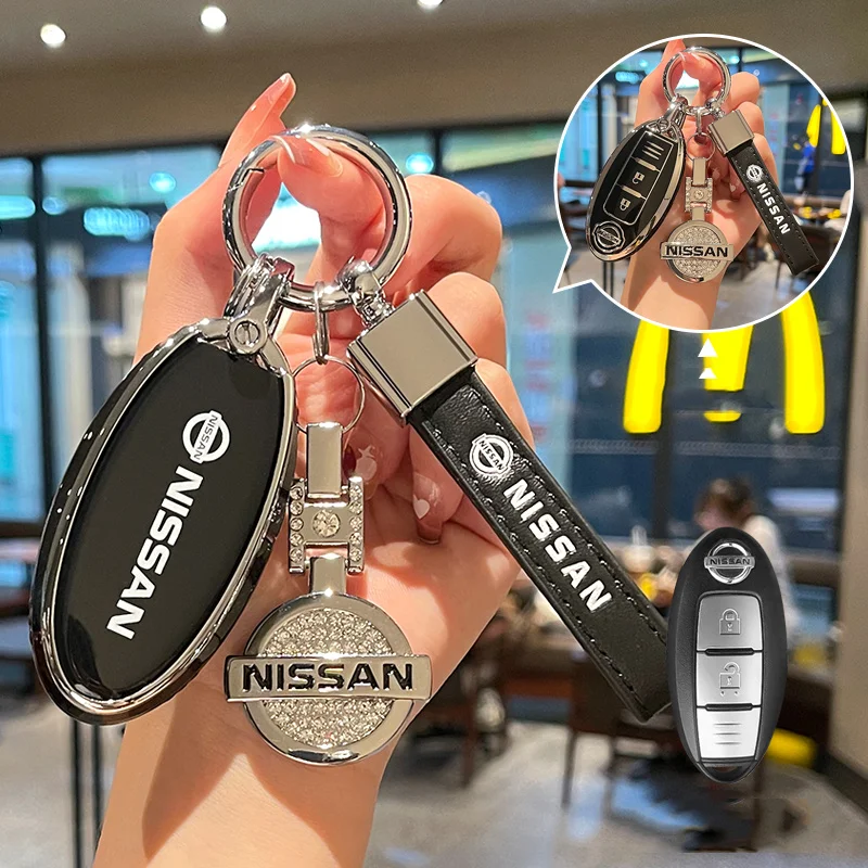 Portachiavi in Pelle Scamosciata con Ciondolo in Lega di Zinco per Auto Nissan Qashqai J10 Juke Pulsar Sentra Altima Patrol Micra Rogue Almera