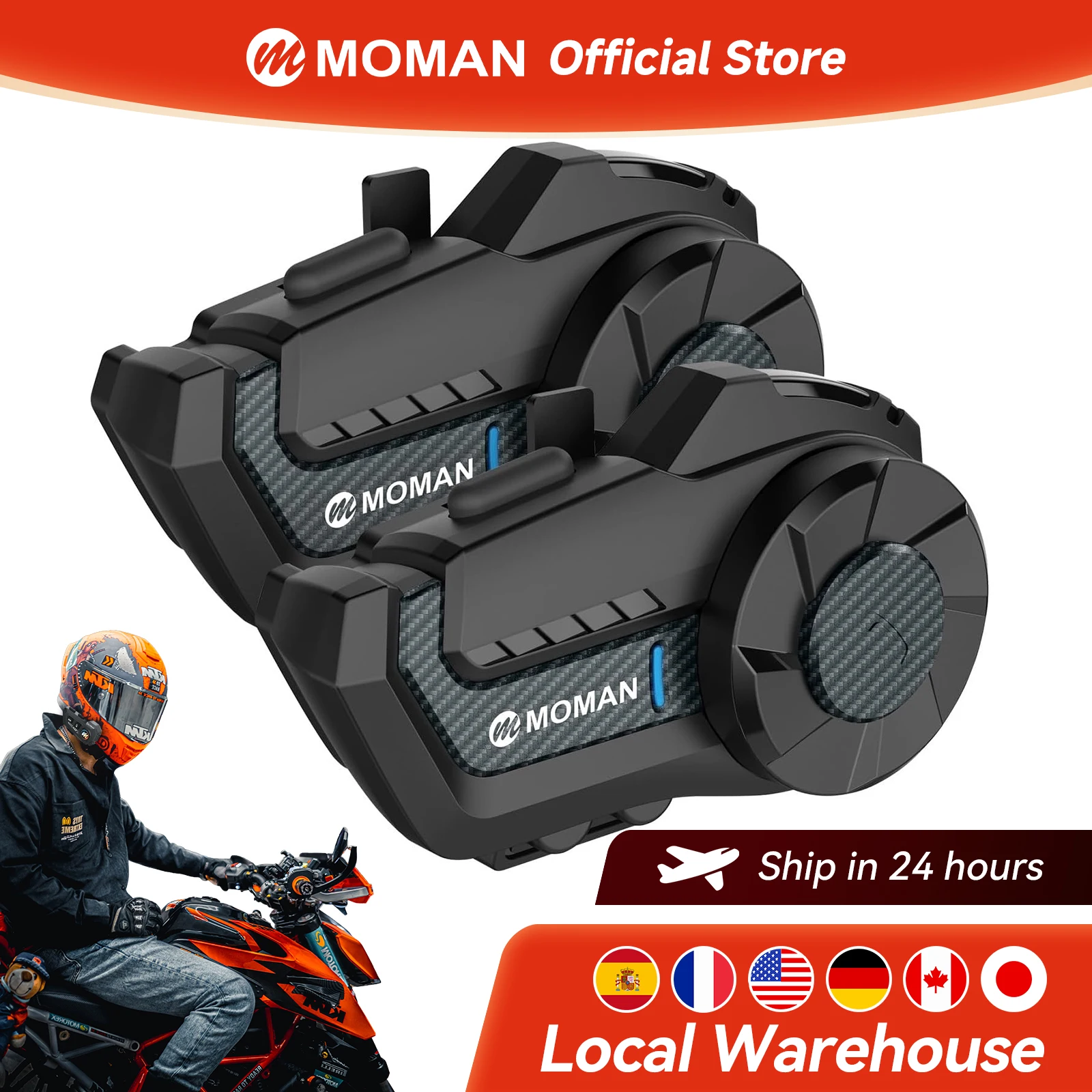 Interfono per Casco Moto Moman H2Pro, Sistema di Comunicazione Universale a 2 Vie per Moto, Portata 1000M, con Cancellazione del Rumore