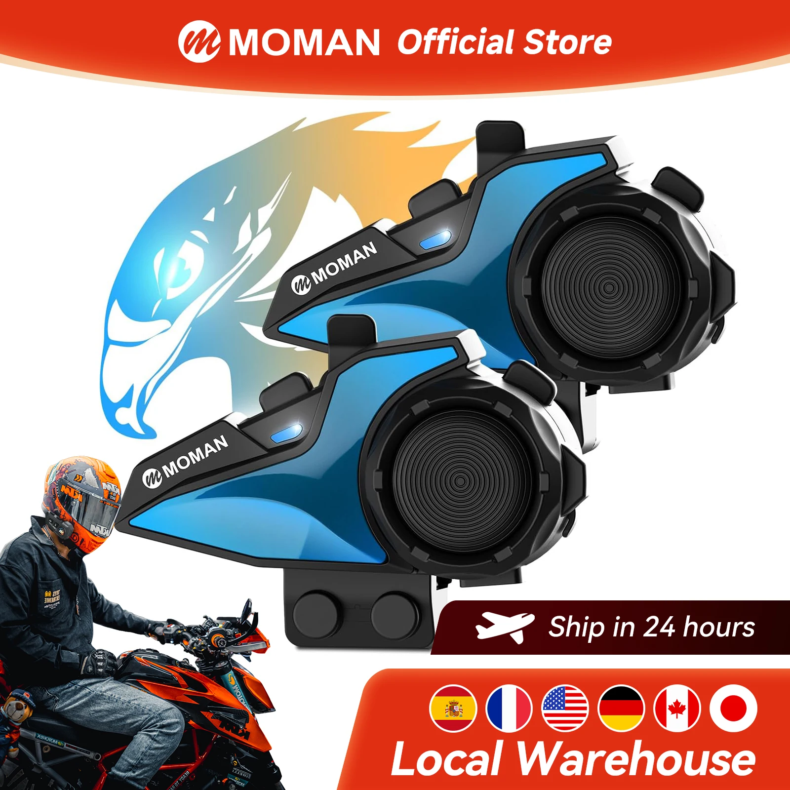 Auricolare per casco da moto Moman con cancellazione del rumore stereo HI-FI per uso singolo e assistente vocale AI per chiamate a mani libere