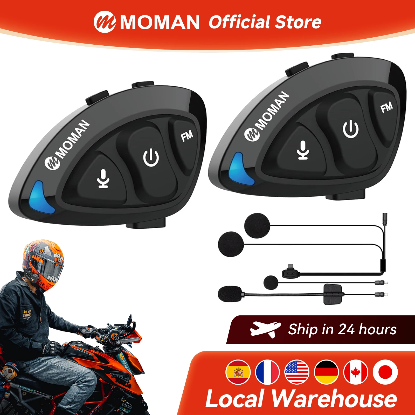 Interfono per Casco Moto Moman con Doppio Chip per Sistemi di Comunicazione Audio Multitasking, Auricolare Interfono Hands-Free
