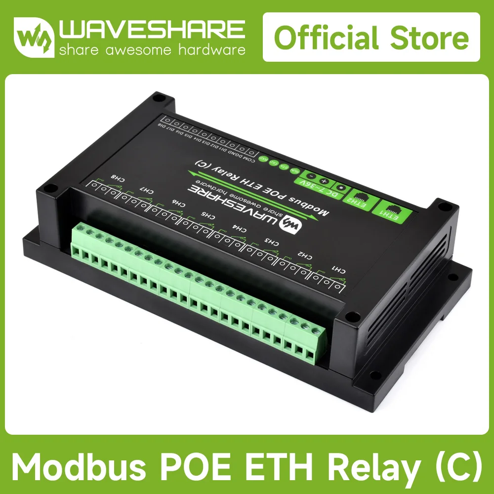 Modulo relè Waveshare a doppia porta Ethernet a 8 canali (C), protocollo Modbus RTU, alimentatore PoE, con vari isolanti