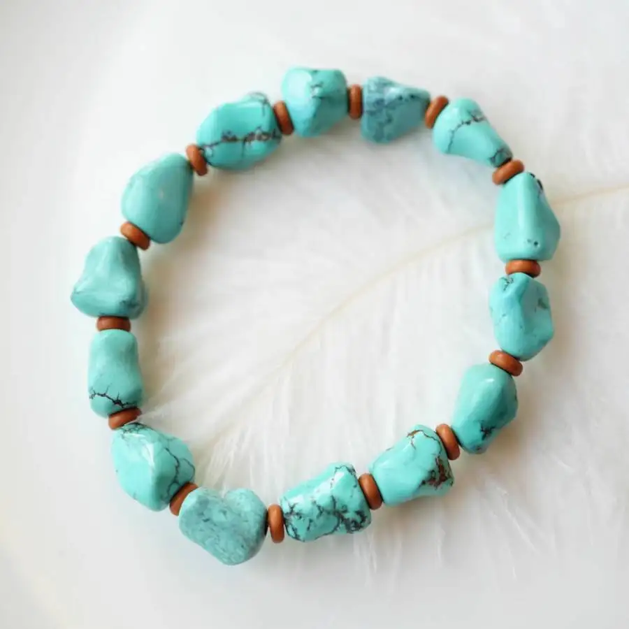 Bracciale fatto a mano in pietra grezza turchese naturale, bracciale con bottoni da uomo, bracciale con perline di preghiera Ramadan, regalo di festa, abbigliamento quotidiano