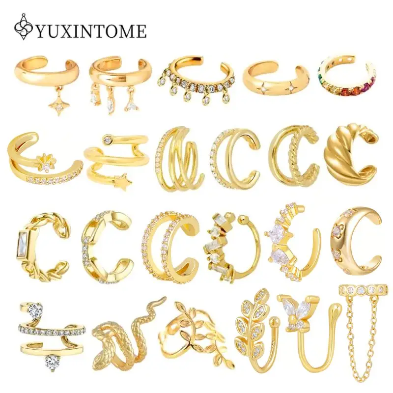 Serpente in metallo placcato da donna Cartilagine con zirconi in oro 24 carati Senza clip per l'orecchio penetranti Tendenza moda Gioielli per feste Orecchini multipli stili