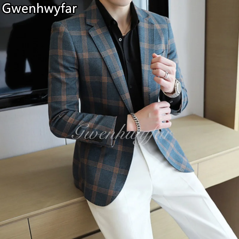 Gwenhwyfar 2025 Giacca scozzese da lavoro casual da uomo di moda monopetto Top con risvolto Cappotto da uomo slim fit per la festa di ballo