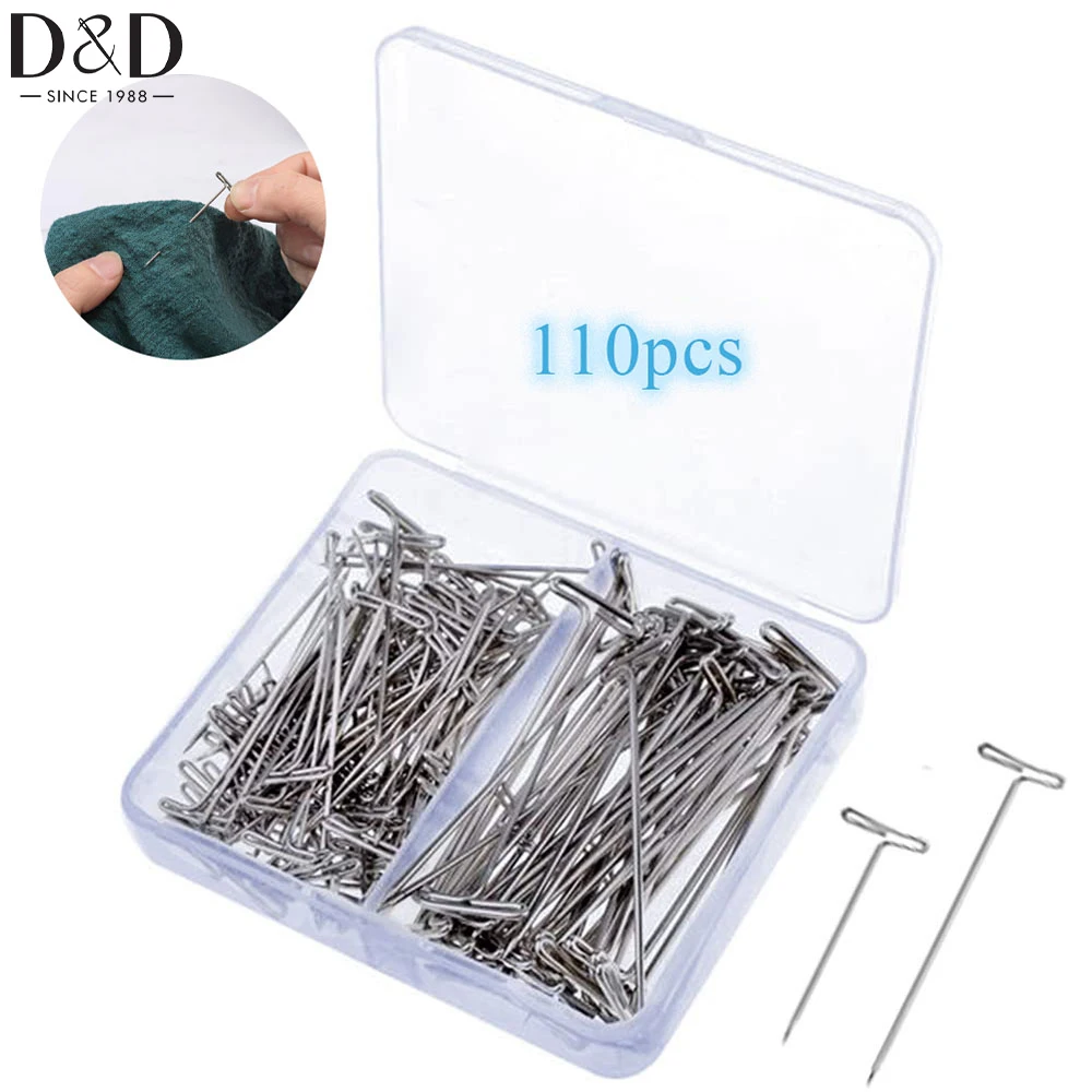 110 pz/set 38/51mm Perno In Acciaio Inox Per Cucire Quilting Perni a T Blocco Parrucca Per Quilting Blocco Tessuto di Lavoro A Maglia Blocco