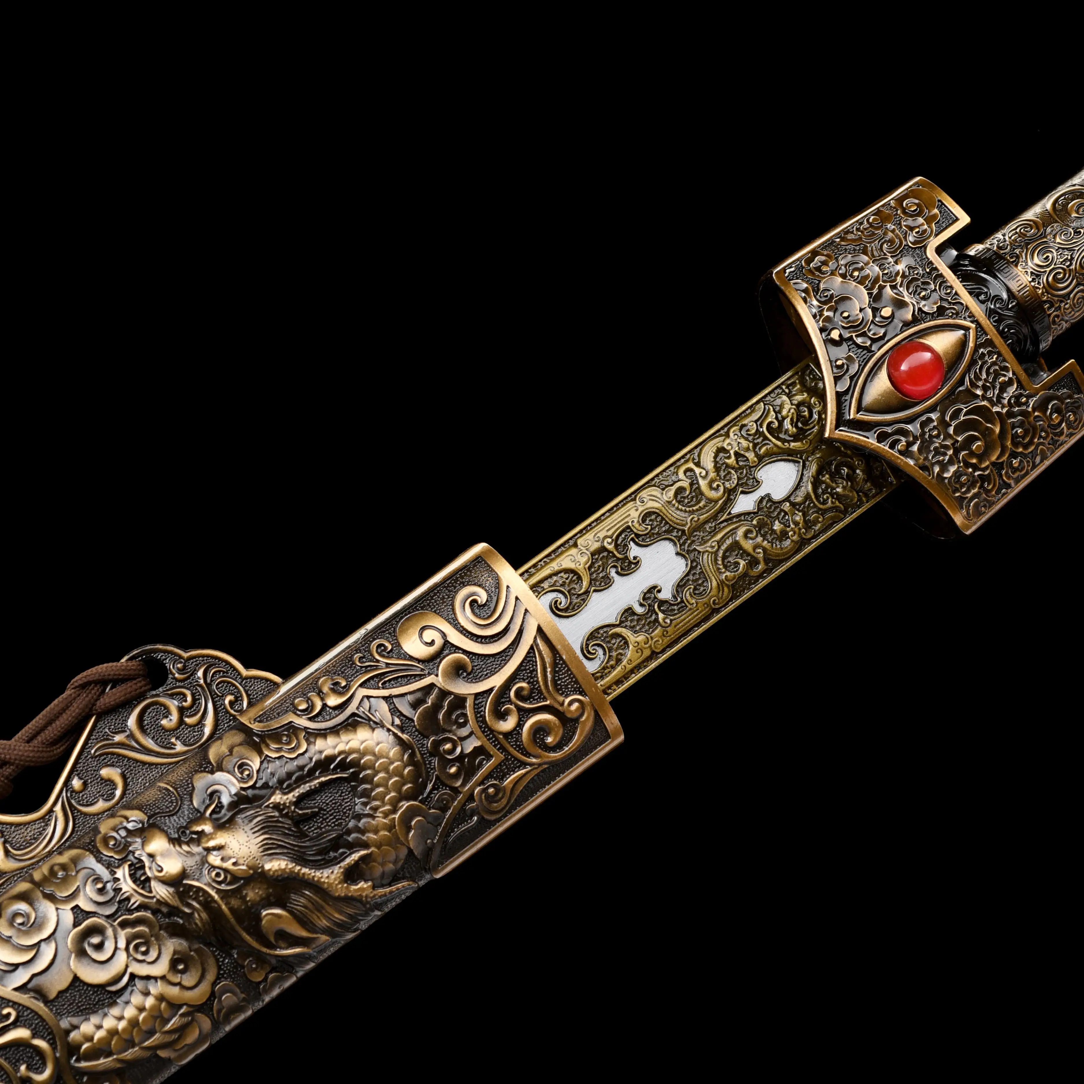 full tang Spada del personale medievale Acciaio di Damasco Preparazione della battaglia Rame puro intagliato feng Shui Lucky Gentleman Spada Arma affilata