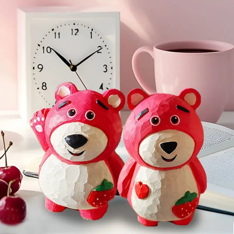 Scultura Artigianale Orsetto Fragola in Legno Massello per Ragazze e Coppie | Adorabile decorazione rilassante e regalo romantico