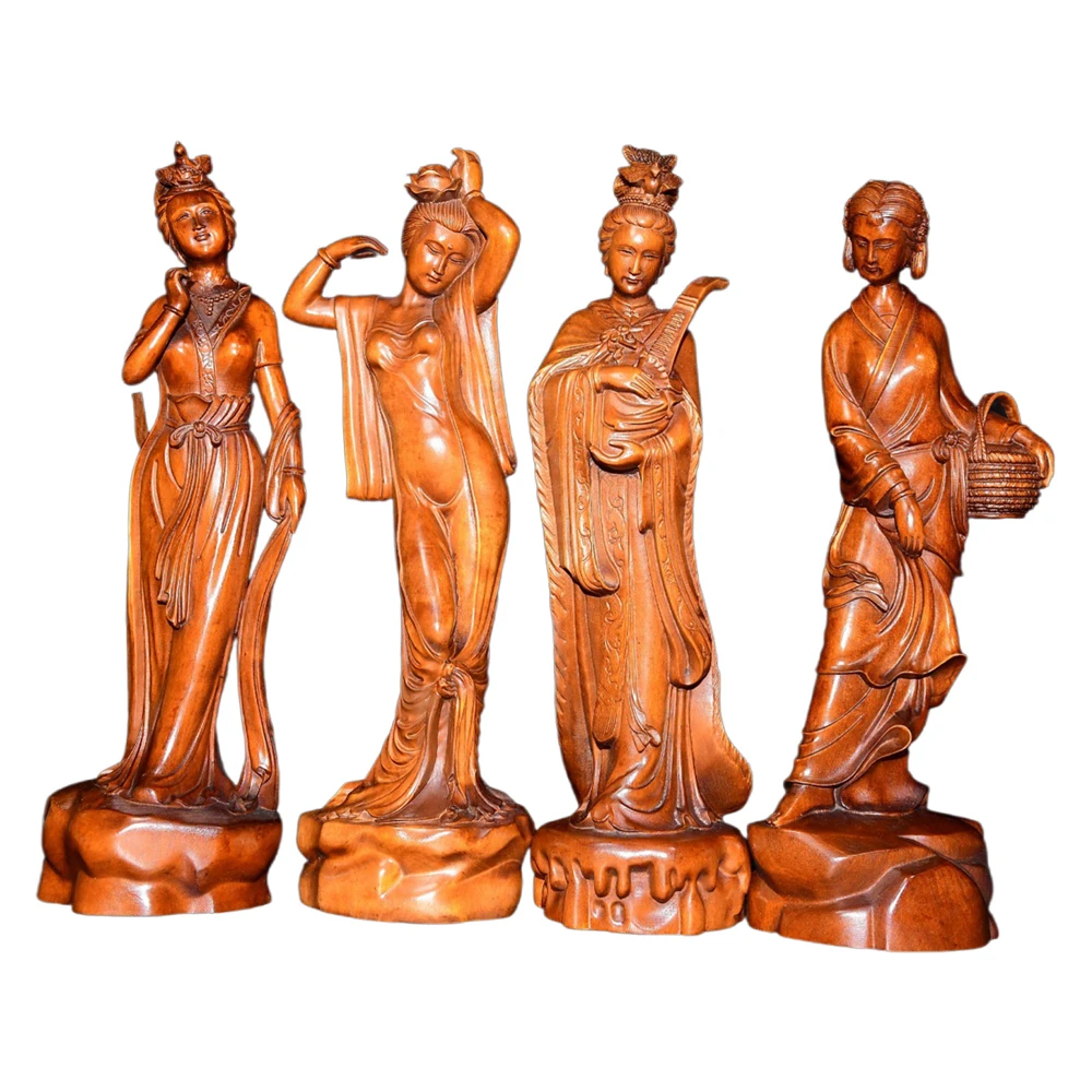 Rustico intaglio in legno Decor intagliato Lady Figurine Scultura Set Delicatezza Gentilezza Eleganza Serenity Poise Fascino Raffinamento