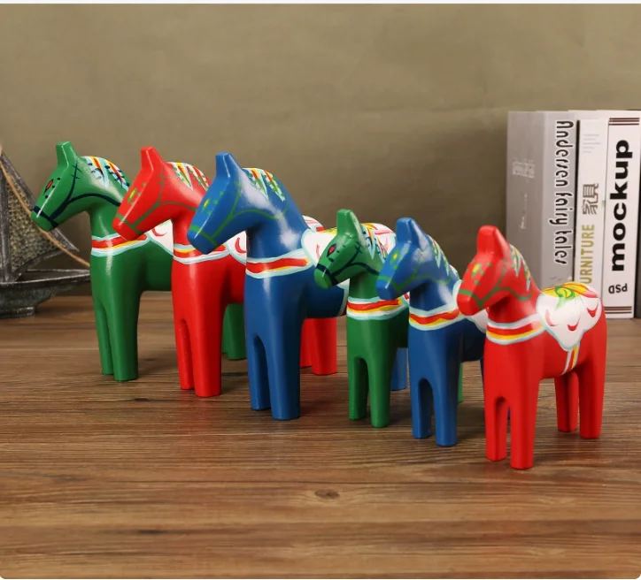 Ornamento in Legno Dipinto a Mano Cavallo Dala Svedese, 3 Colori, Decorazione per la Casa, Regalo