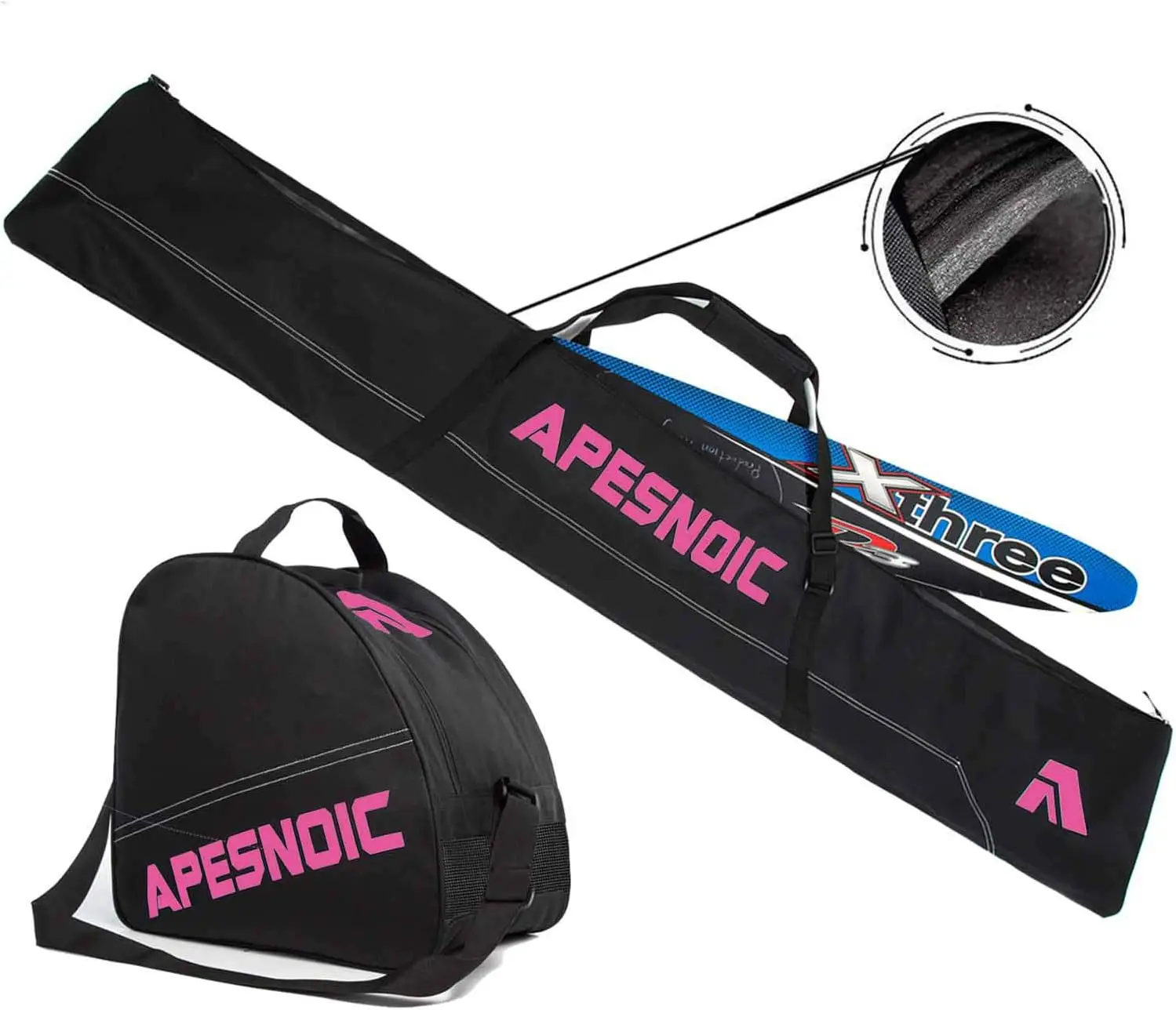 Combinazione di borse da sci e scarponi imbottite in due pezzi - Borsa da viaggio resistente all'acqua adatta ai sci fino a 200 cm e stivali misura 13 con attrezzatura in schiuma da 5 mm B