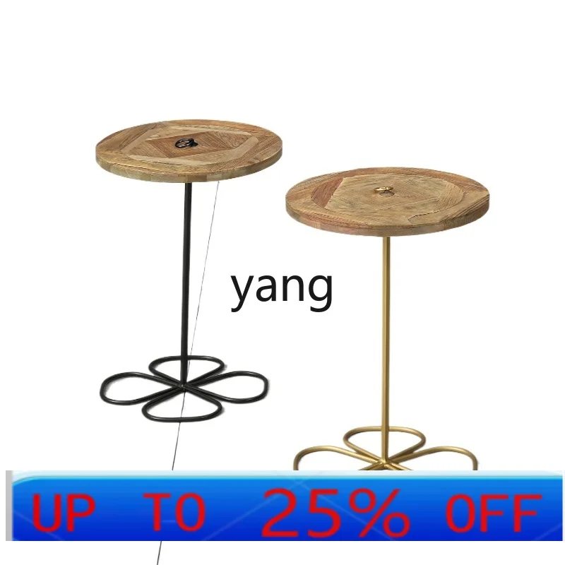 LMMretro tavolo con bordo rotondo in parquet di olmo vecchio riciclato, tavolino da caffè country americano