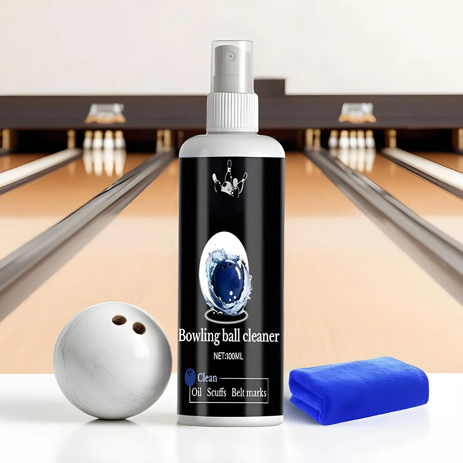 Spray per la pulizia delle palline da bowling da 100 ml Rimozione efficiente dell'olio Spray liquido per la pulizia dello smalto con asciugamano Accessori per palline da bowling