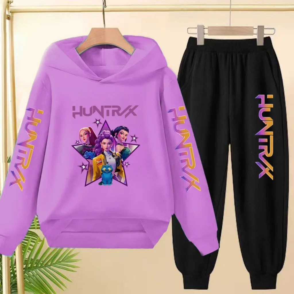 The Cute Mischievous Girl Group Pattern Felpa con cappuccio alla moda + Pantaloni lunghi Abbigliamento sportivo Adatto ai bambini carini dai 3 ai 13 anni