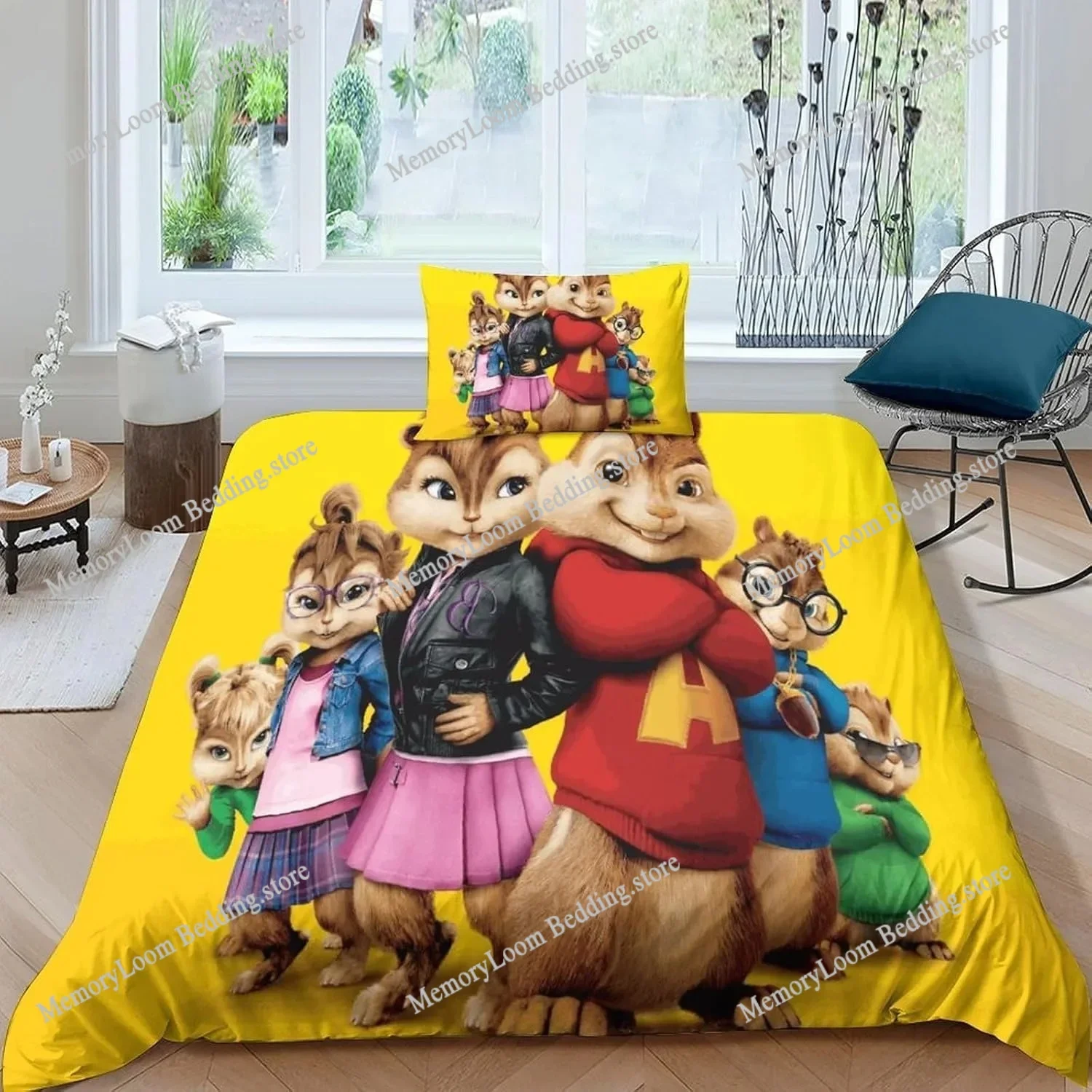 Alvin The Chipmunks Set biancheria da letto Copripiumino Biancheria da letto 3d Decorazione di design alla moda Set copripiumino king size Set letto matrimoniale Biancheria da letto