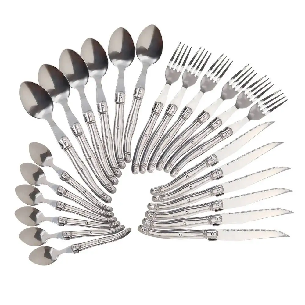 Set di stoviglie in acciaio inossidabile da 24 pezzi, coltelli da bistecca, forchette, tè, dessert, cucchiai da cena, posate occidentali