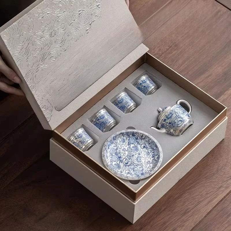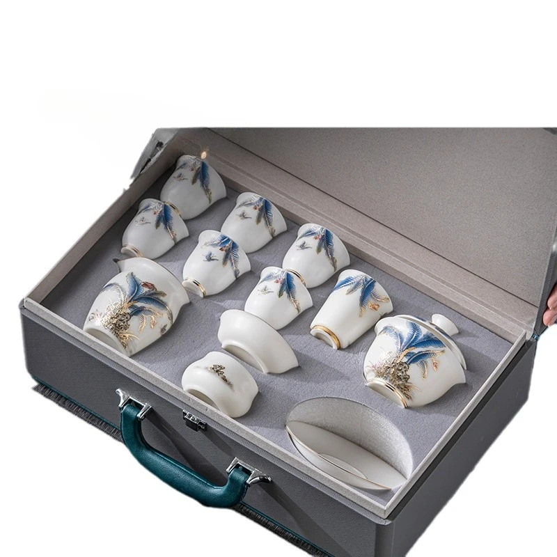 Set da tè in porcellana di giada ghiacciata Nuovo set da tè Kung Fu in ceramica di fascia alta Confezione regalo leggera di lusso della dinastia nazionale per i leader degli anziani