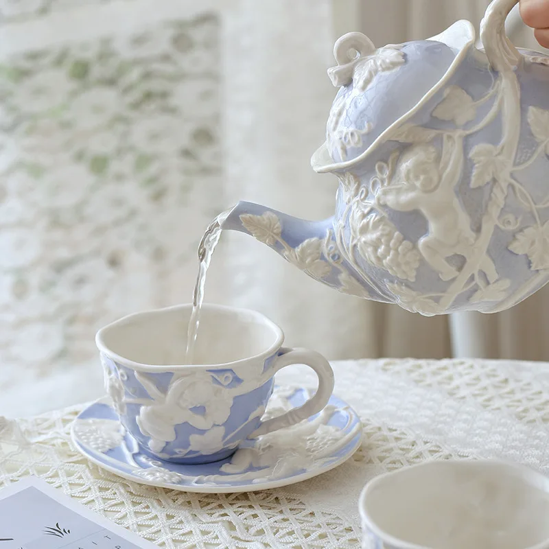 Tazza da tè inglese in rilievo retrò tazza da caffè piattino bollitore set arredamento per la casa stoviglie da tè pomeridiano in stile corte europea