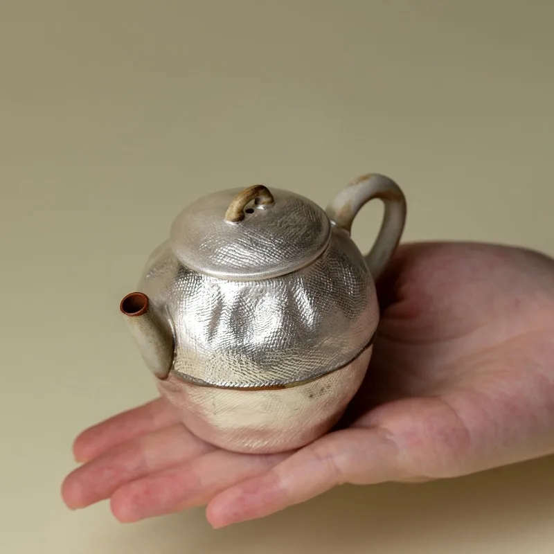 Argento avvolto nel senso di fascia alta, vaso spremuto a mano in ceramica grossolana in stile giapponese, ceramica decorativa in argento, stoviglie da tè singole