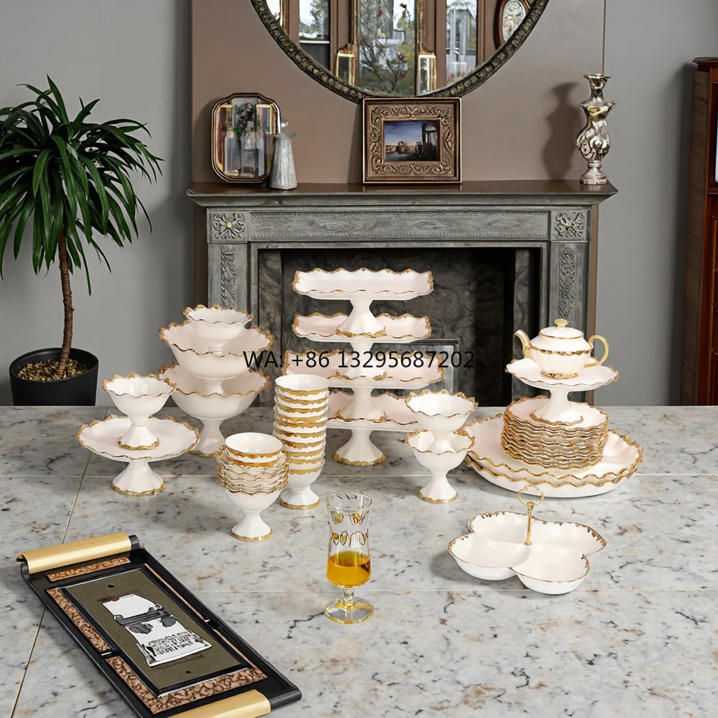 Set di stoviglie in ceramica di lusso all'ingrosso Stoviglie da pranzo eleganti personalizzate per uso domestico senza piombo e cadmio
