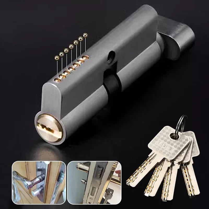 Cilindro della serratura della porta 70Mm/80Mm/90Mm Cilindro della serratura di sicurezza in rame Interno Camera da letto Soggiorno Maniglia Serratura a chiave in ottone 3/4/5 chiavi Nuovo