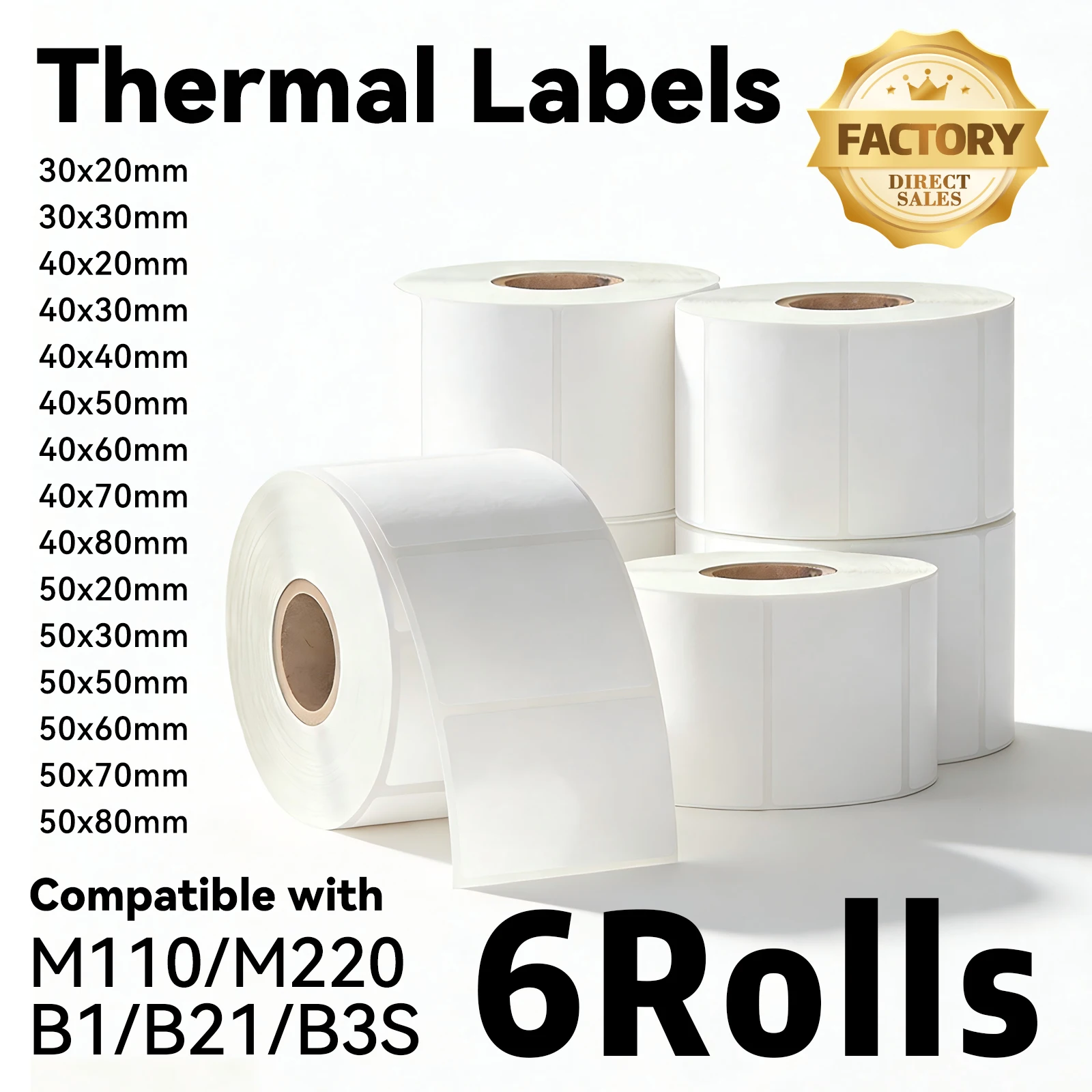 6 rotoli di carta per stampa di etichette bianche compatibili con M110/M220/B3S, adatte per codici a barre, indirizzi, spedizioni, abbigliamento, etichette per la casa