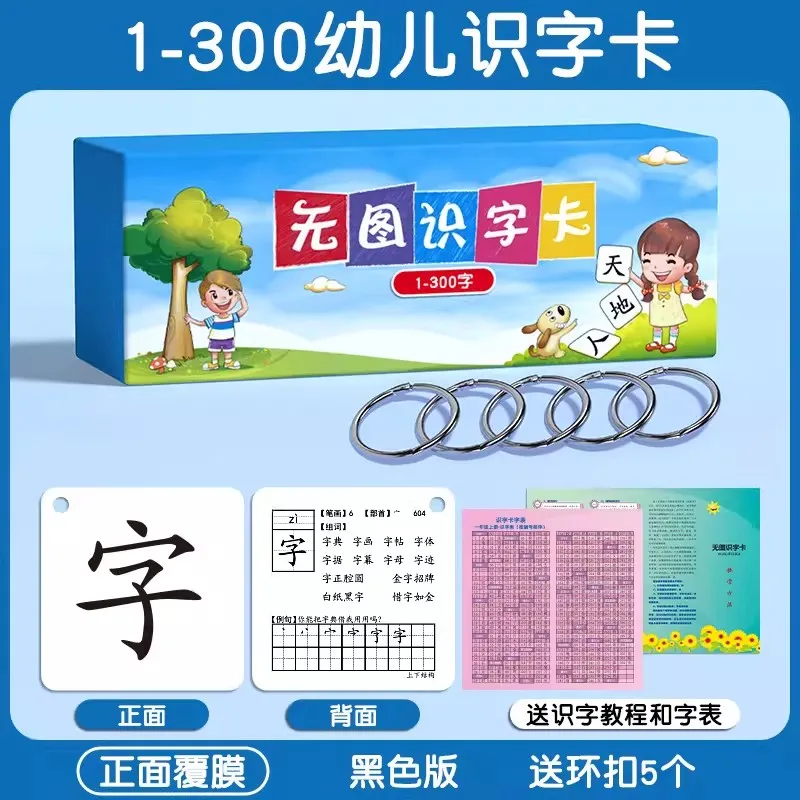 Educazione della prima infanzia 300 parole Carte di alfabetizzazione per bambini Asilo nido Senza immagini Vocabolario Libro con carte dei caratteri cinesi