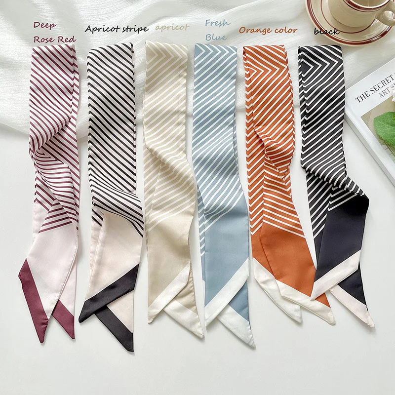 Nuova piccola sciarpa sottile e lunga 80x6 cm per le donne Versatile borsa per cravatte per capelli a strisce nere Decorazione Sciarpe Regalo per feste