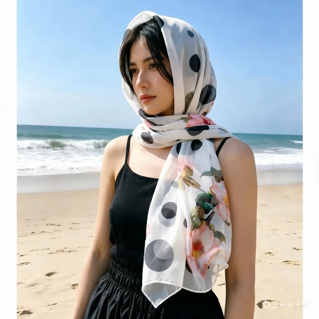 Sciarpa Camelia orientale - Scialle in georgette setoso 160x50 cm, protezione solare UPF, elegante hijab in chiffon e copricostume da spiaggia