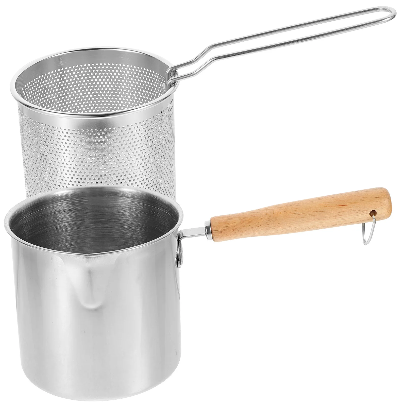 Set di 1 Cestello per Frittura Profonda in Acciaio Inox, Kit Friggitrice con Manico Ergonomico, Padella Antiaderente Resistente al Calore per Cucina Domestica
