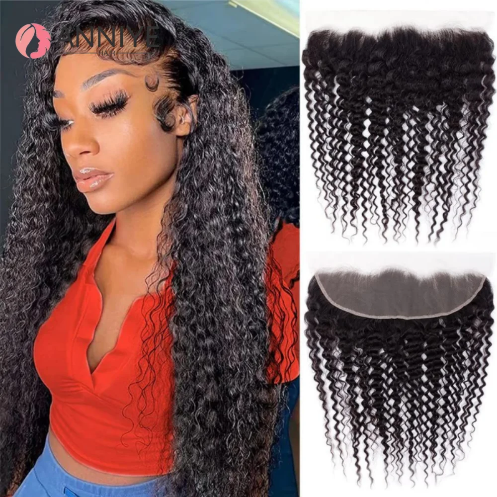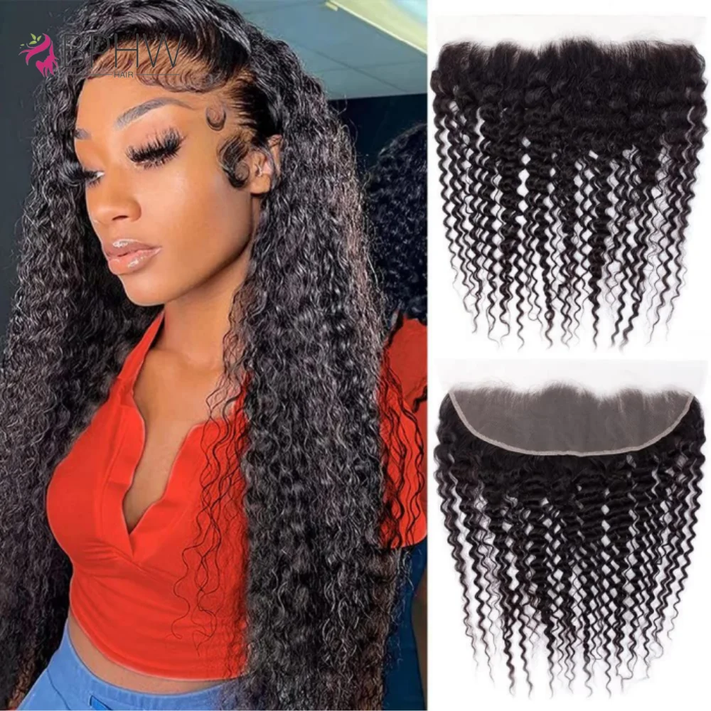Chiusura frontale in pizzo riccio crespo Solo 13x4 Frontale in pizzo Capelli remy brasiliani Pre pizzicati Capelli umani al 100% Frontale in pizzo riccio crespo