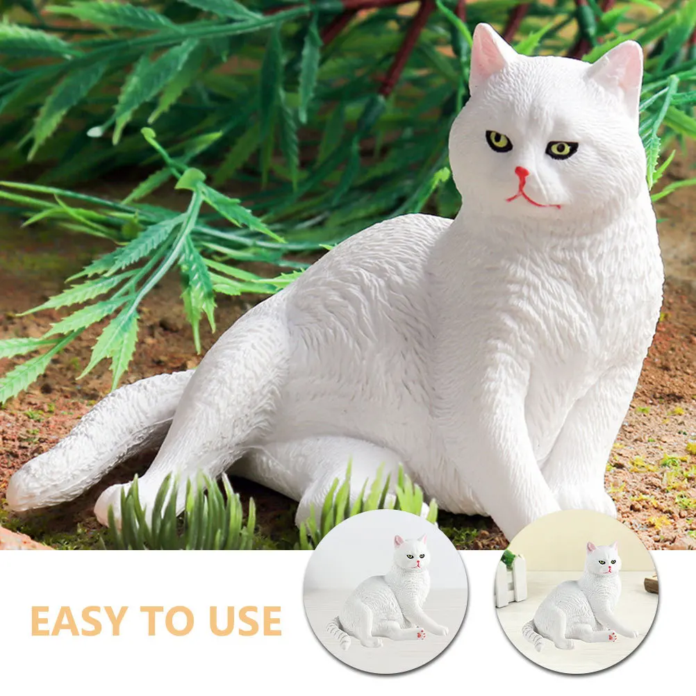 Statua di Gatto Bianco Piccola in Plastica per Decorazione Esterna Giardino Prato Ornamento per Scene Festive Decorazione Creativa per la Casa