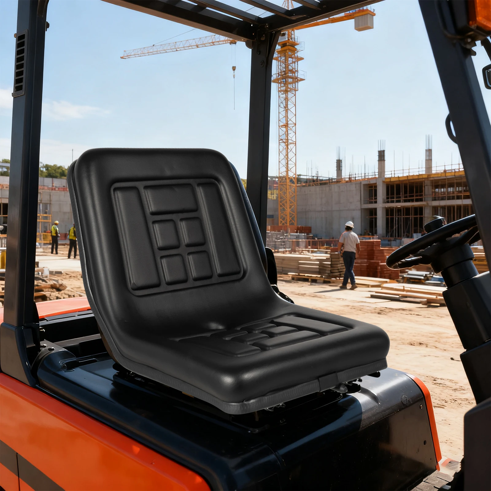 Sedile per Carrello Elevatore, Sedile Regolabile per Trattore con Cintura di Sicurezza, Sedile in Pelle PVC per Carrello Elevatore fino a 100 kg, per Golf Cart, Trattori, Bulldozer
