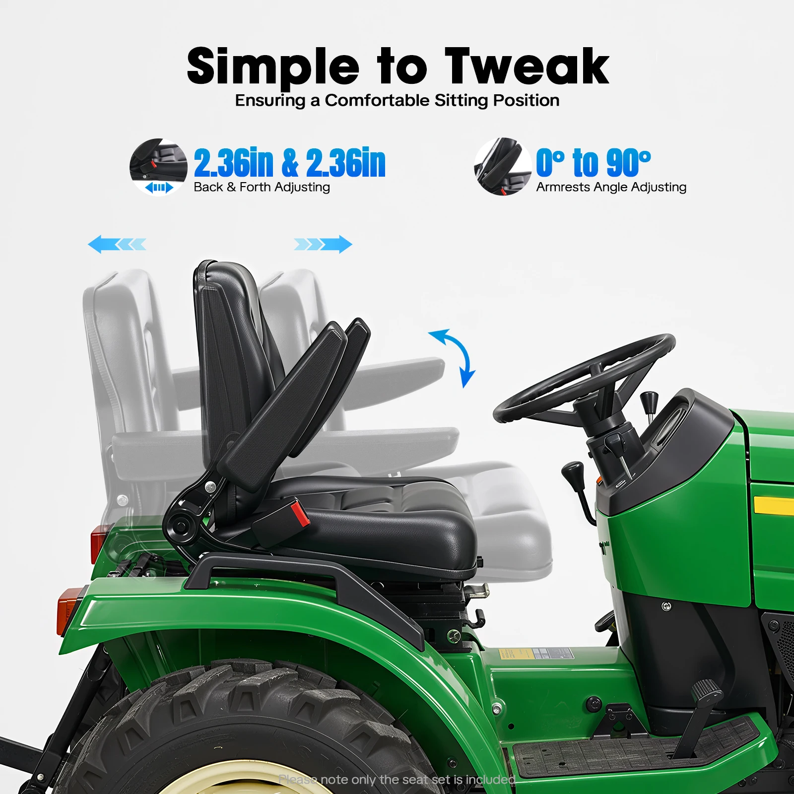 Sedile per trattore nero aggiornato con design ergonomico, cintura di sicurezza e braccioli imbottiti, capacità di 220 libbre per varie macchine pesanti