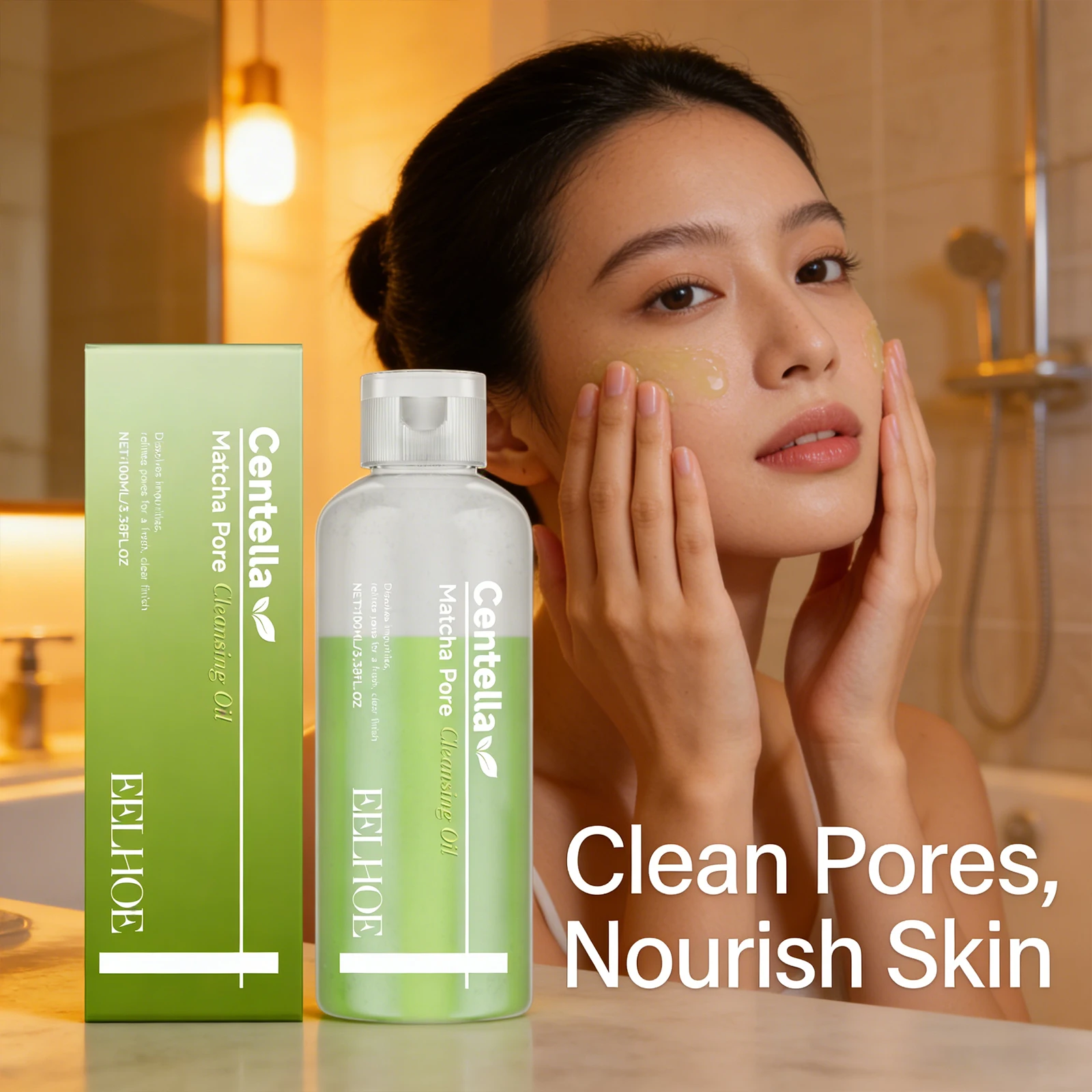 Olio Detergente al Matcha, Rimozione Delicata dei Punti Neri, Restringimento dei Pori, Rinfrescante, Controllo dell'Olio, Idratante, Struccante Viso, Cura della Pelle