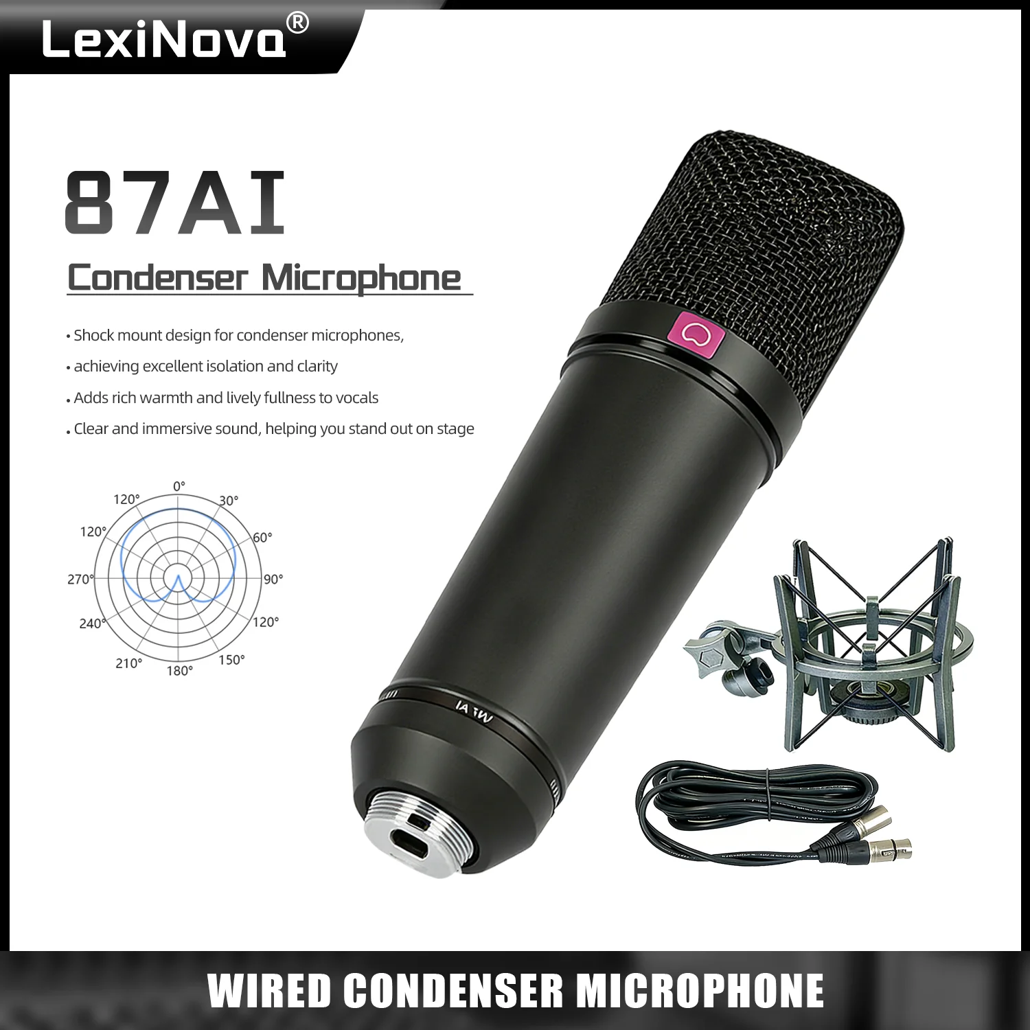 Microfono a Condensatore 26mm/34mm 87AI Professionale da Tavolo o Sospeso per Registrazione, Streaming Live e Strumenti Musicali con Supporto