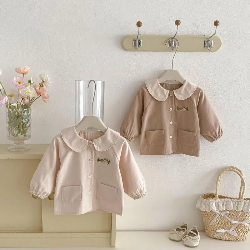 2026 primavera nuovo bambino camicie a maniche lunghe in cotone ragazze carino bavero ricamo cappotto infantile camicie casual giacca vestiti per bambini