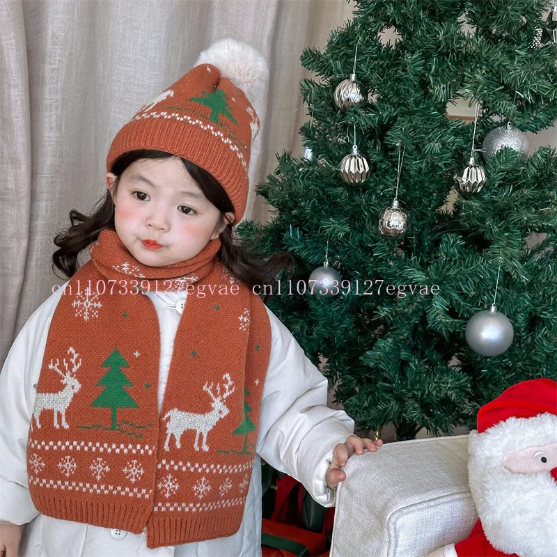 Sciarpa per cappello da alce jacquard natalizia per bambini da 2-8 anni Set in due pezzi Sciarpa calda per ragazzi e ragazze per l'autunno e l'inverno 2026