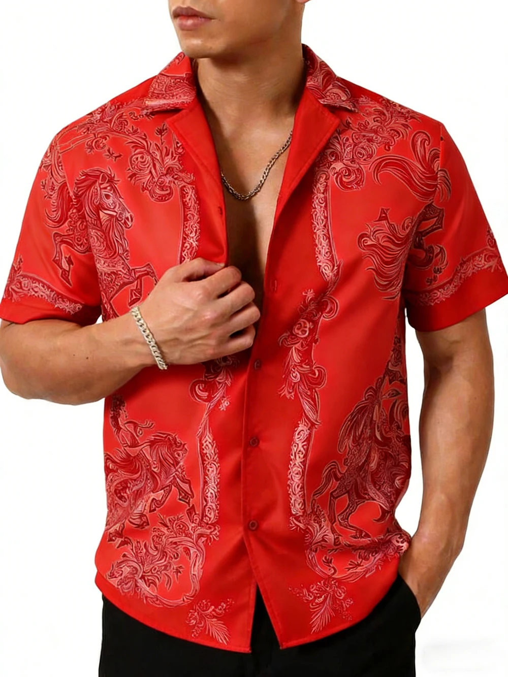 2024 camicie da Cowboy equestri retrò Casual da uomo con stampa 3D camicia con colletto rovesciato camicia a maniche corte camicie estive per ragazzi