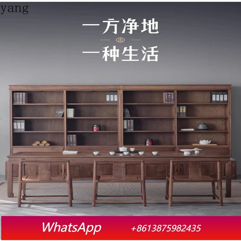 Libreria LH integrata a tutta parete, mobile contenitore da soggiorno in legno massello stile cinese moderno