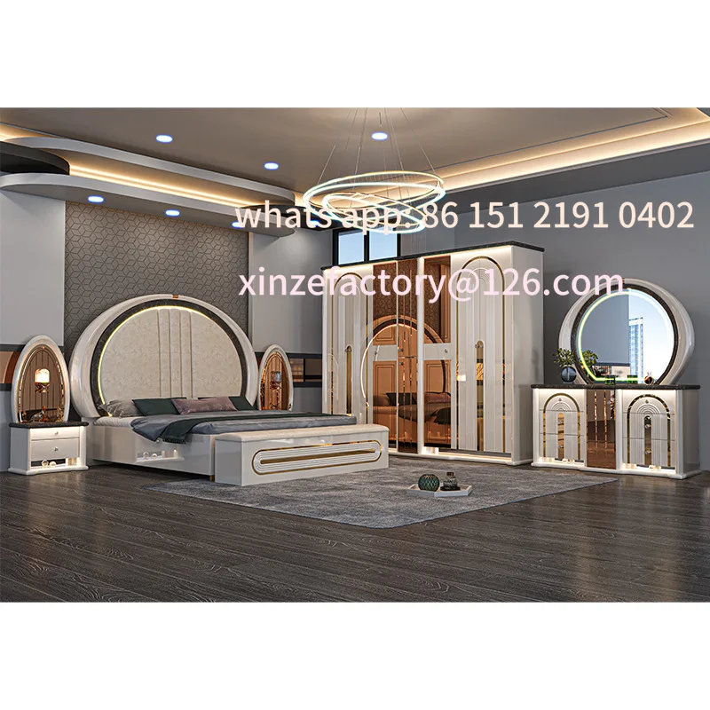 Set completo personalizzabile per camera da letto Mobili moderni di lusso per la casa Combinazione di letti matrimoniali Suite di pannelli da 6 pezzi