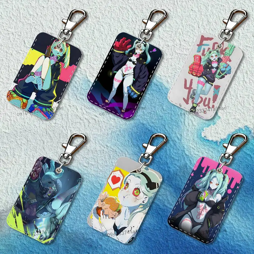 Rebecca C-Cyberpunk E-Edgerunners Portacarte Rettangolare in Pelle con Portachiavi e Anello Portachiavi per Tessere di Trasporto