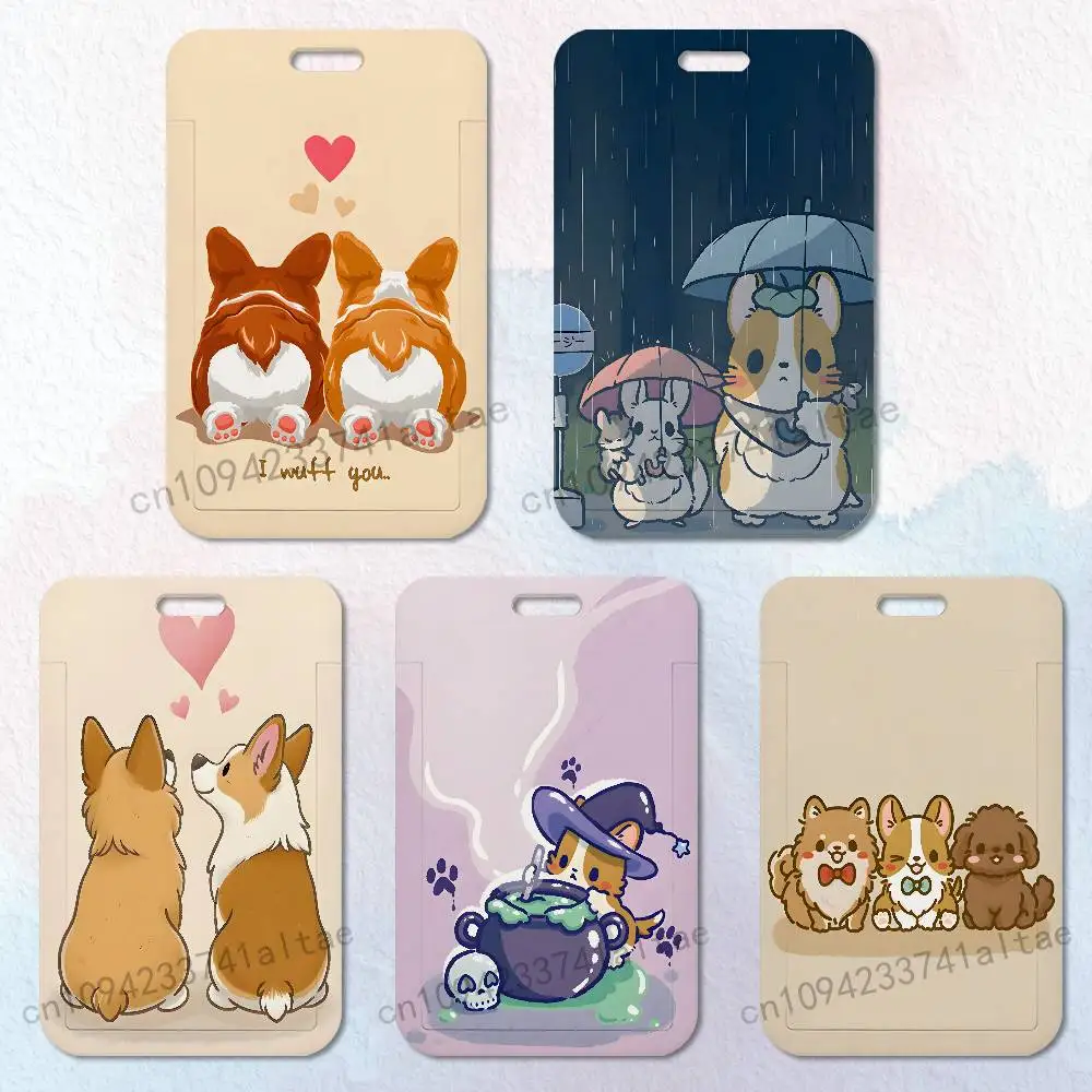 Porta carte di credito con simpatico Corgi dei cartoni animati, resistente, con moschettone, porta badge identificativo verticale, protezione per credenziali
