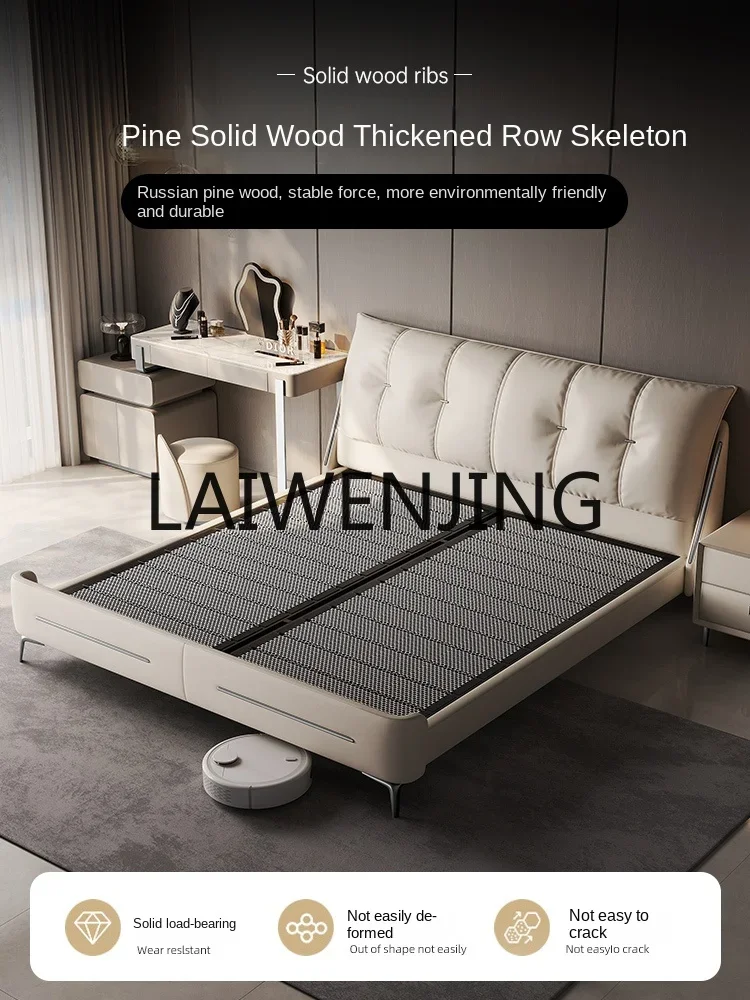 Letto matrimoniale in pelle a-15, stile italiano, lusso leggero, con gambe alte in legno massello, per camera da letto principale e secondaria